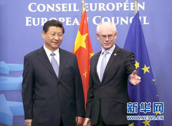 ????新華網(wǎng)布魯塞爾3月31日電(記者 魏建華 錢彤)國家主席習近平31日在布魯塞爾同歐洲理事會主席范龍佩舉行會談。雙方就新形勢下深化中歐全面戰(zhàn)略伙伴關系廣泛深入交換意見,達成重要共識。習近平強調,要從戰(zhàn)略高度看待中歐關系,將中歐兩大力量、兩大市場、兩大文明結合起來,共同打造中歐和平、增長、改革、文明四大伙伴關系,為中歐合作注入新動力,為世界發(fā)展繁榮作出更大貢獻。