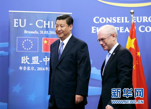 ????3月31日,國家主席習近平在比利時布魯塞爾同歐洲理事會主席范龍佩舉行會談。 新華社記者 鞠鵬 攝