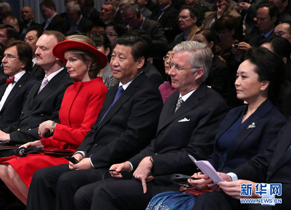 ????比利時王后瑪?shù)贍柕潞褪紫嗟蠀尾?、歐洲理事會主席范龍佩以及歐洲學(xué)院師生代表、比利時各界友好人士、各國駐比利時和歐盟使節(jié)等出席。