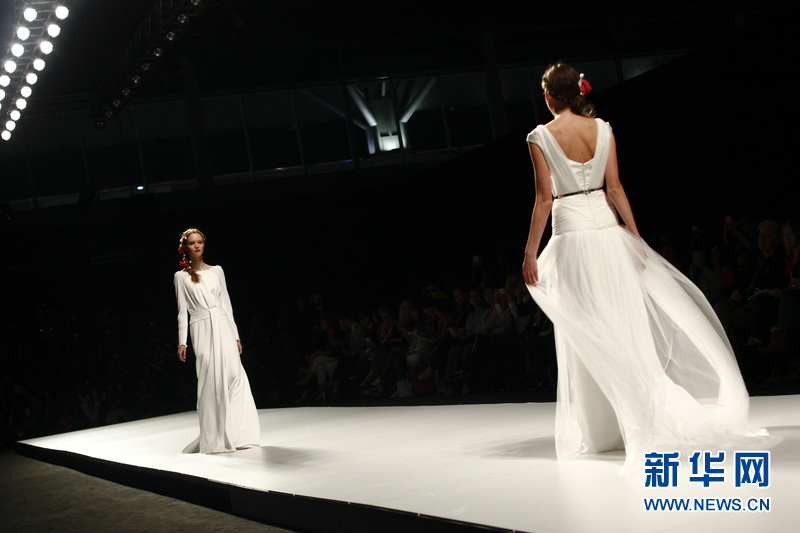 模特在T臺上展示西班牙品牌Victorio & Lucchino的婚紗。Victorio & Lucchino是來自西班牙塞維亞 (Sevilla)的兩位男服裝設計師的名字,Victorio和Lucchino同時也是西班牙本土知名時裝設計師組合之一。