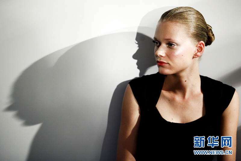 場(chǎng)外正在準(zhǔn)備登臺(tái)展示婚紗的模特。