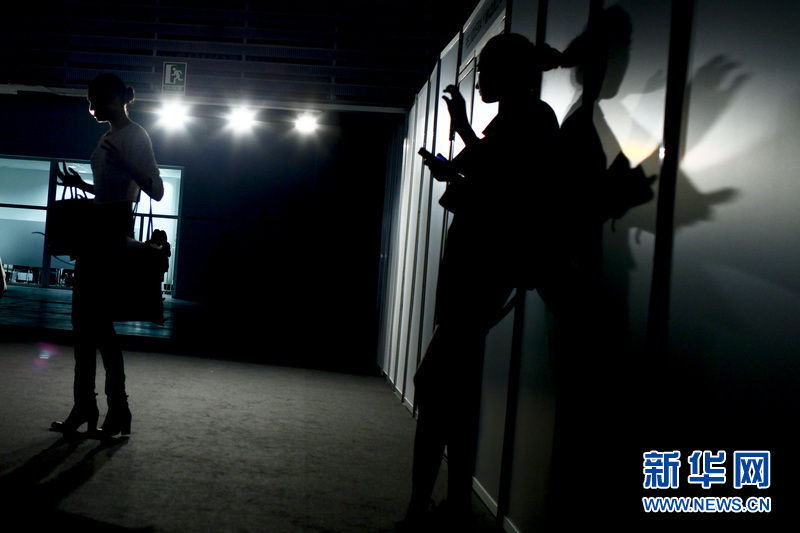 場(chǎng)外正在準(zhǔn)備登臺(tái)展示婚紗的模特。