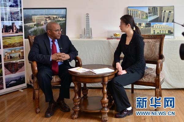 埃塞俄比亞駐華大使館臨時代辦塔斯法耶·伊爾馬·薩博接受新華網(wǎng)專訪。郭小天攝