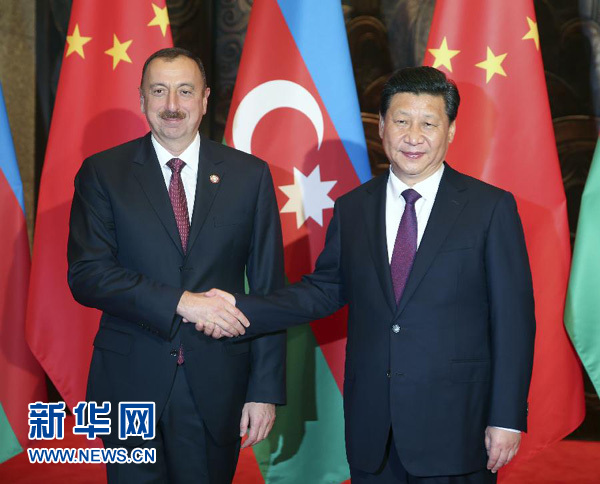 ????習(xí)近平表示,中阿兩國友好合作關(guān)系在平等互利、相互尊重的基礎(chǔ)上不斷發(fā)展。兩國政治關(guān)系牢固,互信水平高,務(wù)實成果豐碩。中方贊賞阿方在涉及中國核心利益的問題上始終給予的堅定支持,支持阿塞拜疆人民根據(jù)本國國情選擇的發(fā)展道路,支持阿方維護(hù)國家主權(quán)、獨立,促進(jìn)經(jīng)濟(jì)發(fā)展的努力。中方愿同阿方一道,密切兩國政府、立法機(jī)構(gòu)、政黨、各部門交往,增進(jìn)政治互信。中方鼓勵本國企業(yè)同阿方在工程承包、基礎(chǔ)設(shè)施建設(shè)、交通、電信、新能源等領(lǐng)域開展合作,鼓勵兩國人文交流,愿同阿方加強(qiáng)在國際和地區(qū)事務(wù)中的溝通和協(xié)調(diào)。