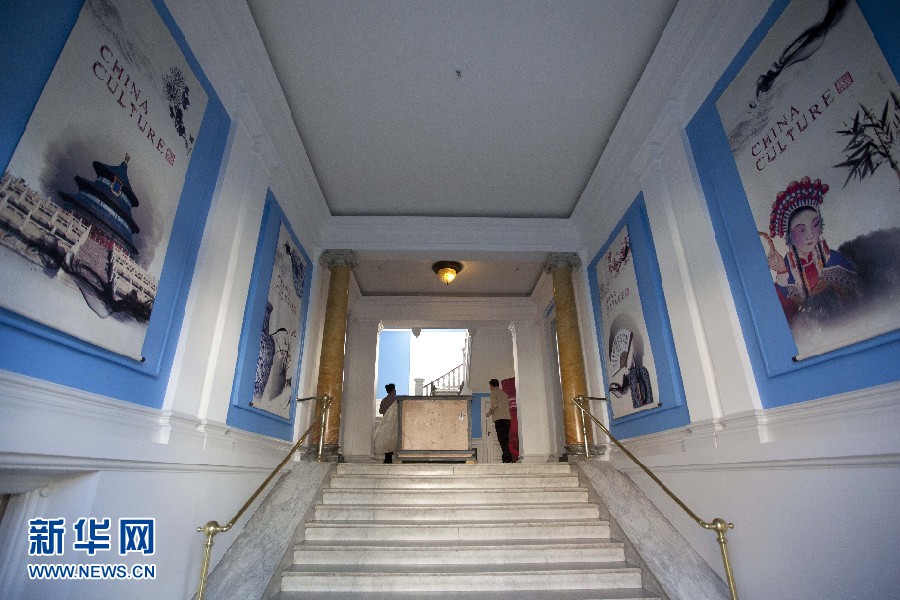 ??? 9日,工作人員在為即將揭幕、舉行首展的“哥本哈根中國(guó)文化中心”布置展品。哥本哈根中國(guó)文化中心是北歐地區(qū)第一家中國(guó)文化中心,位于丹麥?zhǔn)锥几绫竟兄行闹陌餐缴蠼?6號(hào)。這幢歷史悠久的黃色建筑建于1906年,使用面積2400多平方米,其前身是著名的丹麥皇家音樂(lè)學(xué)院.文化中心11日將舉行揭幕儀式。吳波攝