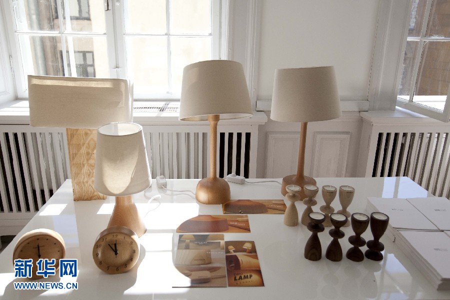 圖為10日所拍攝的“融?工藝設(shè)計(jì)生活”設(shè)計(jì)展上用竹條編織的臺(tái)燈。