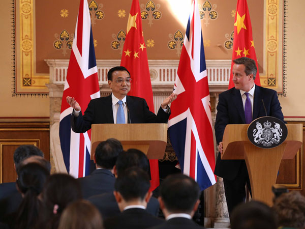 ????在頗有古典特色的英國外交部大樓內(nèi),中國國務(wù)院總理李克強(qiáng)與英國首相共同見證了兩國間一系列合作文件的簽署。