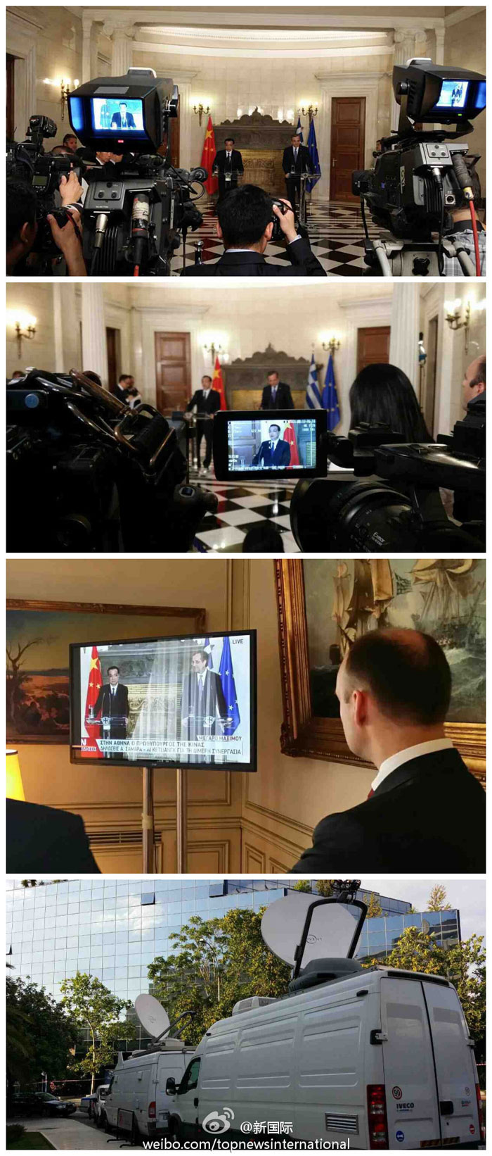 ??? 新華網(wǎng)北京6月20日電 據(jù)新華社“新國際”微博報道,19日,李克強總理抵達希臘開始正式訪問。希臘媒體極為關注中國總理的到訪,從機場的歡迎儀式到總理府會談,再到兩國總理共見記者,希臘媒體始終全程追隨。希臘國家電視臺等媒體還派出衛(wèi)星轉播車對所有活動進行全程直播。