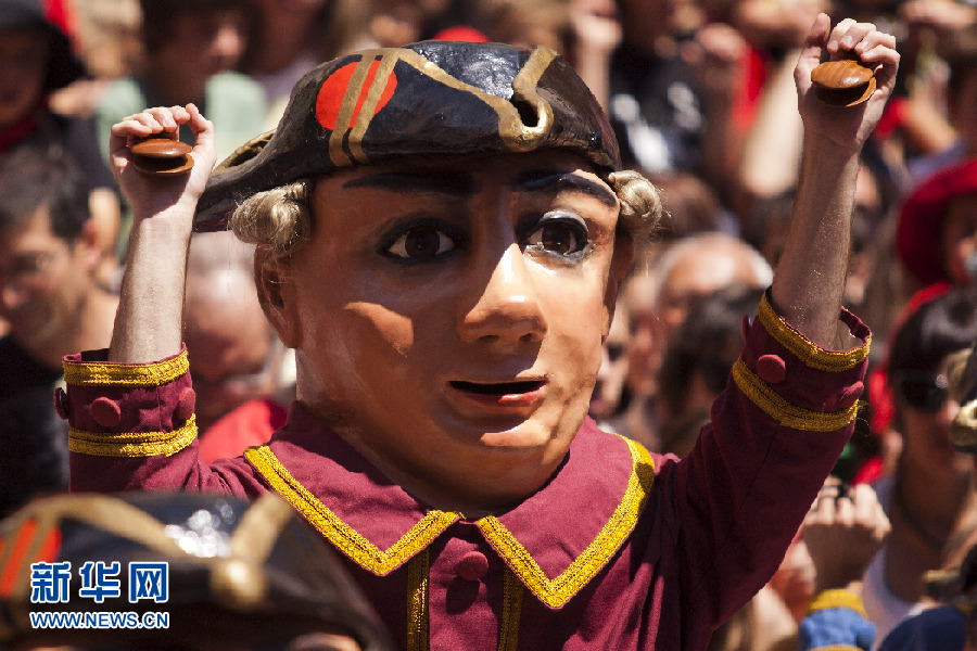 西班牙貝爾加(Berga)市的煙火節(jié)上,在人群中跳舞的大頭娃娃。