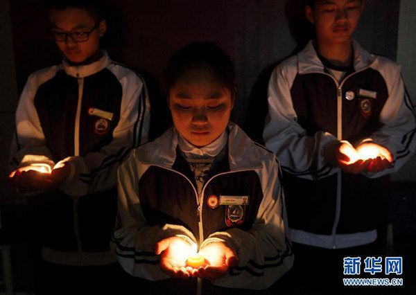 資料圖:學(xué)生為馬航失聯(lián)客機(jī)上的生命祈福 新華社發(fā) 駱善新 攝