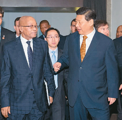祖馬表示,南非希望加強(qiáng)同中國的全面戰(zhàn)略伙伴關(guān)系,密切在重大國際和地區(qū)問題上的溝通和協(xié)調(diào),擴(kuò)大經(jīng)貿(mào)、能源等領(lǐng)域合作。南方歡迎中國企業(yè)積極參與南非經(jīng)濟(jì)社會發(fā)展。我期待今年下半年訪華,進(jìn)一步提高兩國合作水平。南方感謝中方對建設(shè)非洲快速反應(yīng)部隊(duì)提供的支持。中非合作論壇部長級會議2015年在南非舉行,南方愿意同中方一道,推動非中合作取得更多成果。