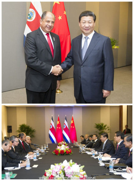 ??? 新華網(wǎng)北京7月17日電 據(jù)新華社“新國際”微博報(bào)道,習(xí)近平主席16日會(huì)見哥斯達(dá)黎加總統(tǒng)索利斯時(shí)說,中哥關(guān)系正如一棵茁壯成長(zhǎng)的美洲象耳樹。中方愿繼續(xù)同哥方一道,把政治互信的根扎深,把互利合作的干養(yǎng)壯,使人文交流的葉繁茂,使中哥關(guān)系這棵大樹果實(shí)累累。(攝影:謝環(huán)馳)?
