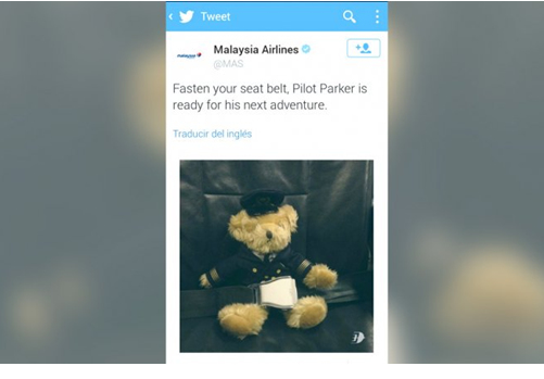 據(jù)阿根廷Infobae網(wǎng)站7月17日報(bào)道,馬來西亞航空公司的MH17航班在烏克蘭東部墜毀后,該航空公司刪除了MH17航班出事前的最后一條官方推特。這條英文推特的內(nèi)容是:系上安全帶,飛行員“派克”已經(jīng)準(zhǔn)備好了下一次旅程。推特還配了一張玩具熊假扮成飛行員準(zhǔn)備起飛的照片。