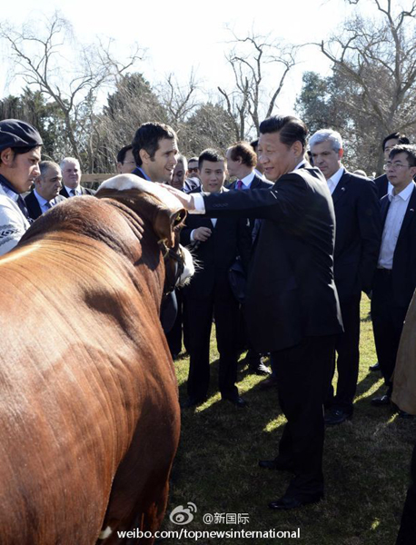 ????新華網(wǎng)北京7月20日電 據(jù)新華社“新國(guó)際”微博報(bào)道,天下事,農(nóng)為先。正在世界“糧倉(cāng)肉庫(kù)”阿根廷訪問(wèn)的國(guó)家主席習(xí)近平19日來(lái)到布宜諾斯艾利斯郊區(qū)的共和國(guó)莊園,了解農(nóng)牧業(yè)發(fā)展情況,感受阿根廷傳統(tǒng)高喬人文化。該莊園為阿根廷先進(jìn)農(nóng)牧技術(shù)和文化代表。