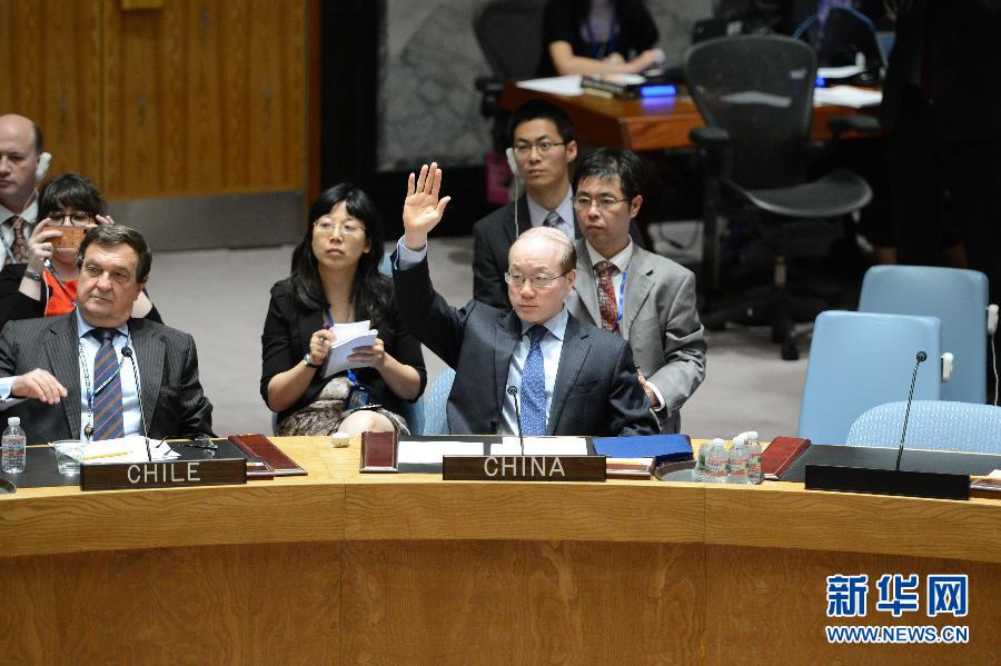 ??? 7月21日,在紐約聯(lián)合國總部,中國常駐聯(lián)合國代表劉結(jié)一(中)參加安理會(huì)就決議草案進(jìn)行的表決。聯(lián)合國安理會(huì)21日通過決議,強(qiáng)烈譴責(zé)馬來西亞航空公司MH17航班墜毀事件,同時(shí)敦促各方充分配合對這一事件的國際調(diào)查。新華社記者牛曉雷攝