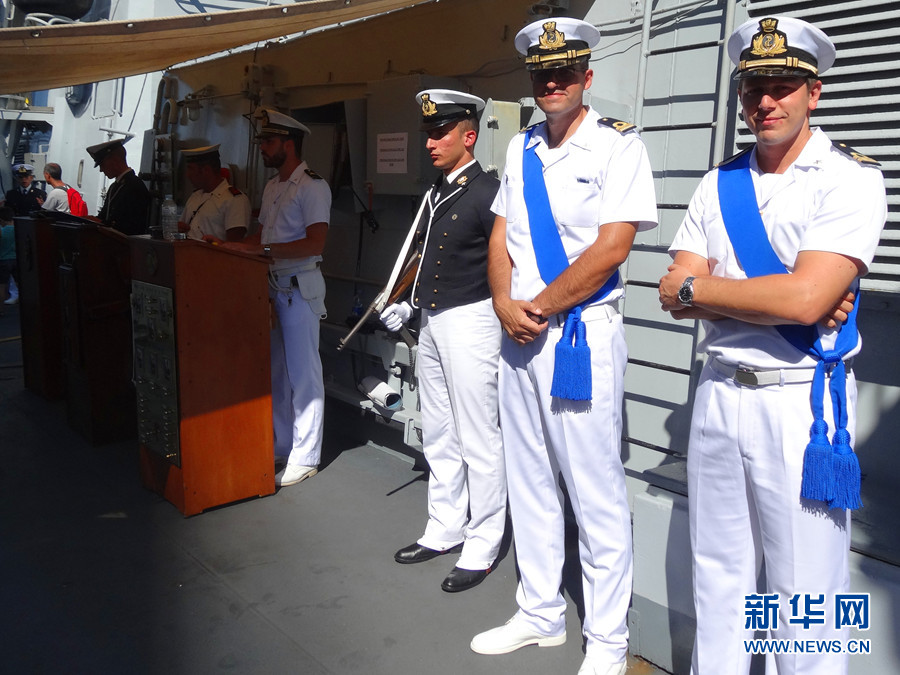 ????“路易吉·杜蘭德·德拉佩訥號”驅(qū)逐艦上的工作人員。新華網(wǎng)記者 周喆 攝