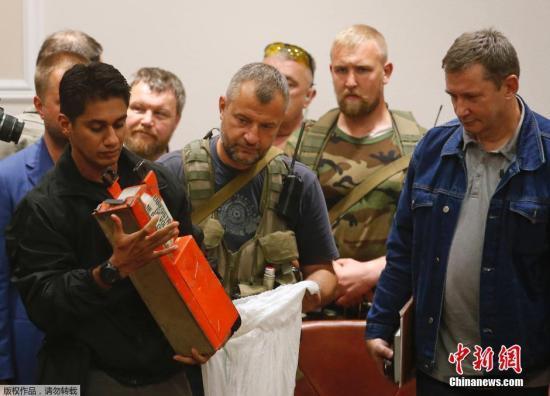 當(dāng)?shù)貢r(shí)間2014年7月22日,頓涅茨克,“頓涅茨克人民共和國”官員向馬來西亞調(diào)查人員移交馬航MH17航班客機(jī)黑匣子。