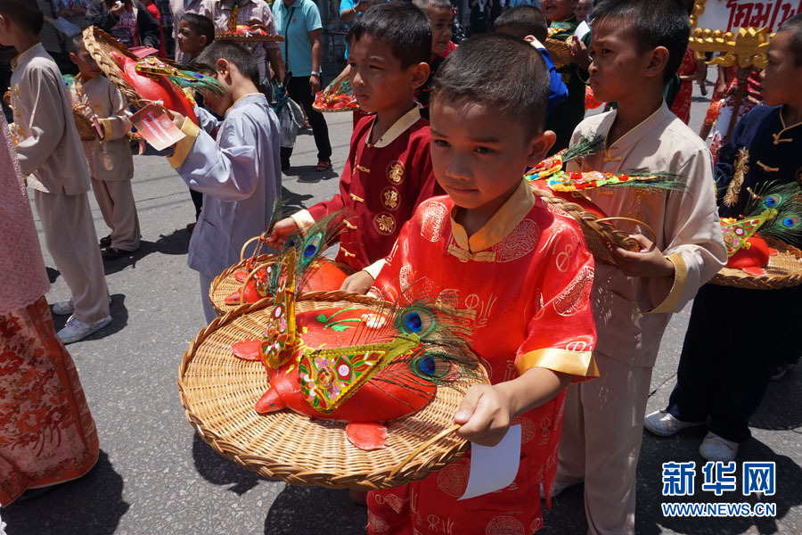 ????8月12日,泰國普吉府舉辦中國傳統(tǒng)的“中元普渡”活動,以普渡孤魂,表達(dá)仁愛和孝道思想。該活動在普吉已有150多年的歷史,每逢中國農(nóng)歷7月,當(dāng)?shù)厝A人便會舉行祭祀儀式,用面粉和糖制成大小不一的紅色面團(tuán),裝飾成烏龜形狀,既表達(dá)了對于祖先的懷念,還傳遞了對于全家人健康長壽的祝福。圖為一名兒童手捧用于祭祀的烏龜形狀糕點(diǎn)。新華網(wǎng)記者 楊云燕 攝