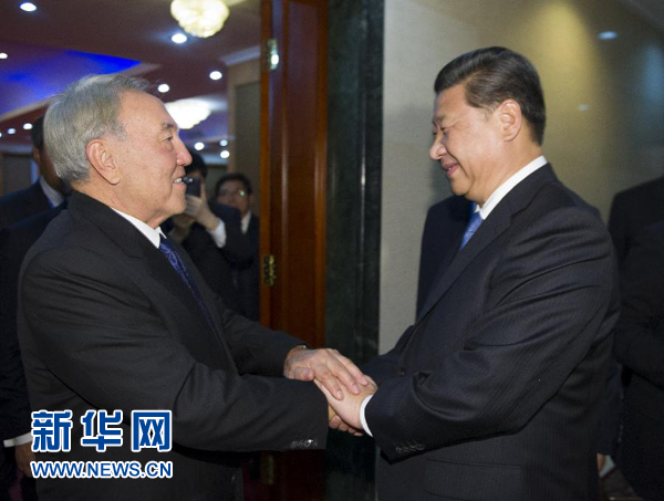 習(xí)近平指出,這是我們今年第四次見(jiàn)面。中哈保持密切高層交往,充分體現(xiàn)了中哈全面戰(zhàn)略伙伴關(guān)系的高水平和特殊性,對(duì)指導(dǎo)兩國(guó)關(guān)系發(fā)展非常重要。今年5月你對(duì)中國(guó)進(jìn)行國(guó)事訪問(wèn)并出席亞洲相互協(xié)作與信任措施會(huì)議第四次峰會(huì),我們當(dāng)時(shí)達(dá)成的各項(xiàng)共識(shí)正得到有效落實(shí)。你關(guān)心的擴(kuò)大哈方農(nóng)產(chǎn)品和礦產(chǎn)資源對(duì)華出口問(wèn)題,我已責(zé)成中方有關(guān)部門(mén)研究并正在積極解決。
