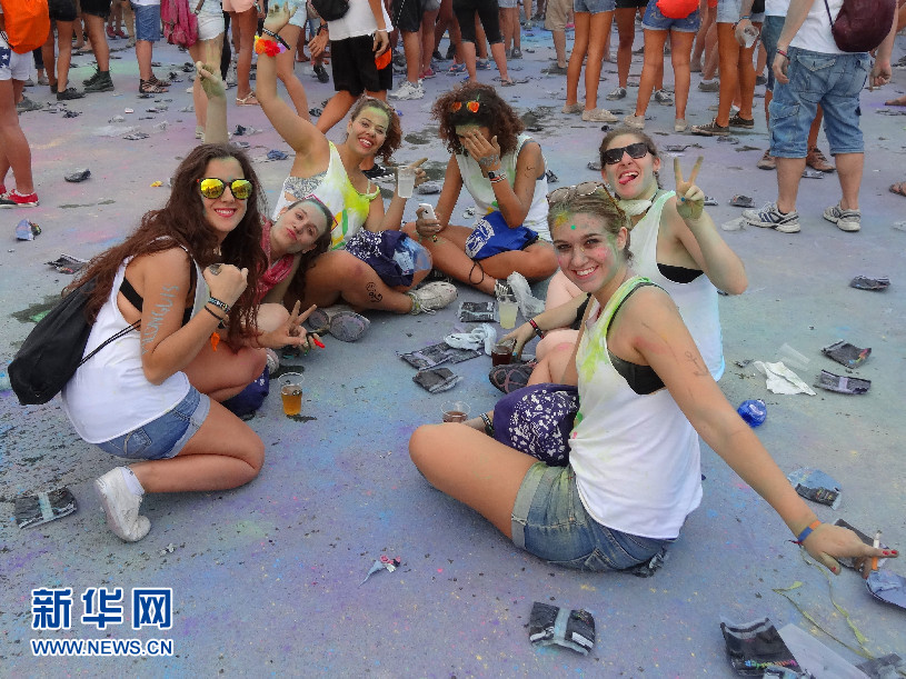 “2014巴塞羅那霍利節(jié)”現(xiàn)場(chǎng)的年輕人 (新華社記者周喆拍攝)?