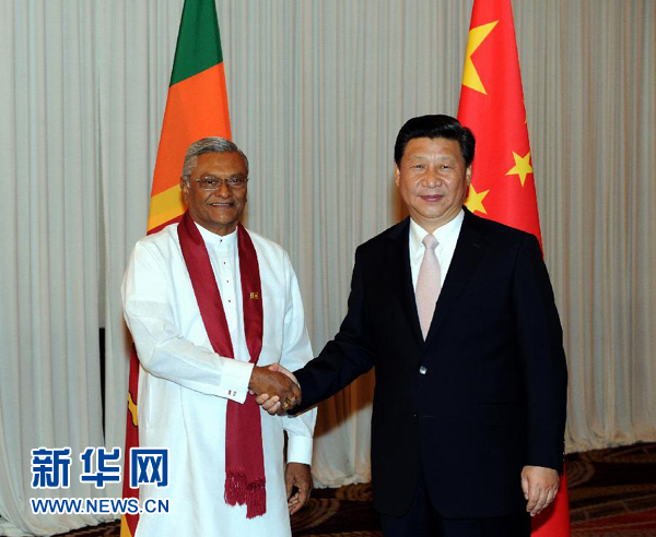 ????習近平強調(diào),中方視斯里蘭卡為全天候的朋友和伙伴,感謝斯方一貫在臺灣、涉藏等問題上支持中方立場,支持斯方維護獨立、主權、領土完整的努力,將一如既往為斯里蘭卡經(jīng)濟社會發(fā)展提供力所能及的幫助。新形勢下,中方愿同斯方在現(xiàn)有良好基礎上,以共同建設21世紀海上絲綢之路為契機,加強互利合作,擴大人文交流,不斷為兩國關系注入新動力、正能量。希望雙方加強立法機構及黨際交往,歡迎恰馬爾議長及更多斯里蘭卡議會成員訪華,加深相互了解和友誼。
