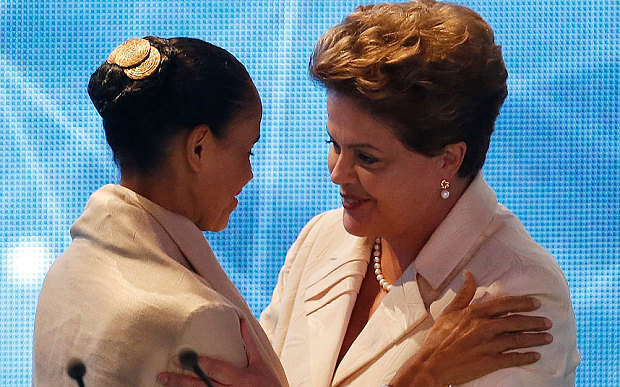 ????其實,席爾瓦的政治生涯也極具戲劇性并充滿意外。起先參與政治活動的她,后來又成了一名環(huán)境保護主義者;在擔任多年的國會議員后,她于2003年在盧拉政府中出任環(huán)境部長。2009年8月前,席爾瓦與羅塞夫同屬勞工黨;2010年,席爾瓦代表綠黨參選總統(tǒng)并落選。在今年的巴西總統(tǒng)選舉中,加入社會黨的席爾瓦本來是作為副總統(tǒng)競選人陪伴坎波斯,但由于坎波斯在8月份墜機身亡,席爾瓦在黨內被選為總統(tǒng)競選人。