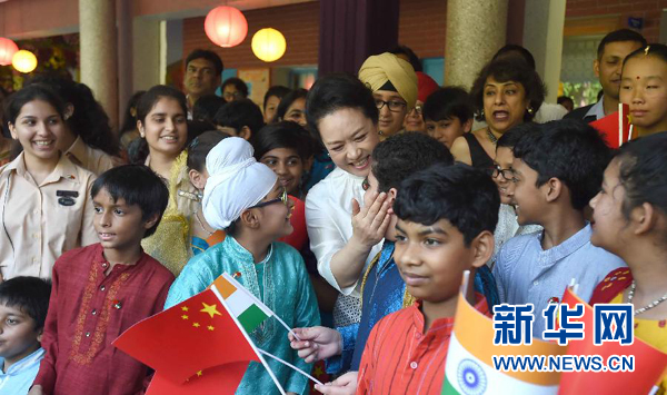 ????新華網(wǎng)新德里9月18日電(記者李斌)18日上午,習(xí)近平主席夫人彭麗媛在新德里參觀了泰戈爾國際學(xué)校。