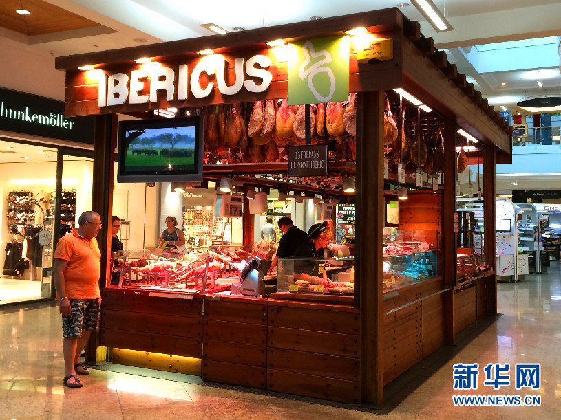 西班牙巴塞羅那一家專(zhuān)營(yíng)西班牙火腿的店鋪。