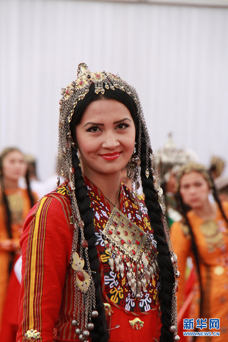 參加慶?;顒?dòng)的土庫曼斯坦美女 記者 盧敬利攝