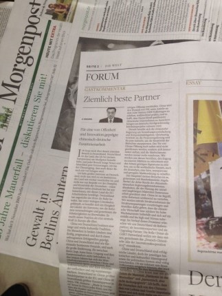 抵達前夕,克強總理通過德國主流媒體《世界報》,以“讓開放創(chuàng)新引領中德合作”為題,向德國人民問好并聊起對中德關系未來發(fā)展的期望??芍^是人未到,聲先至。