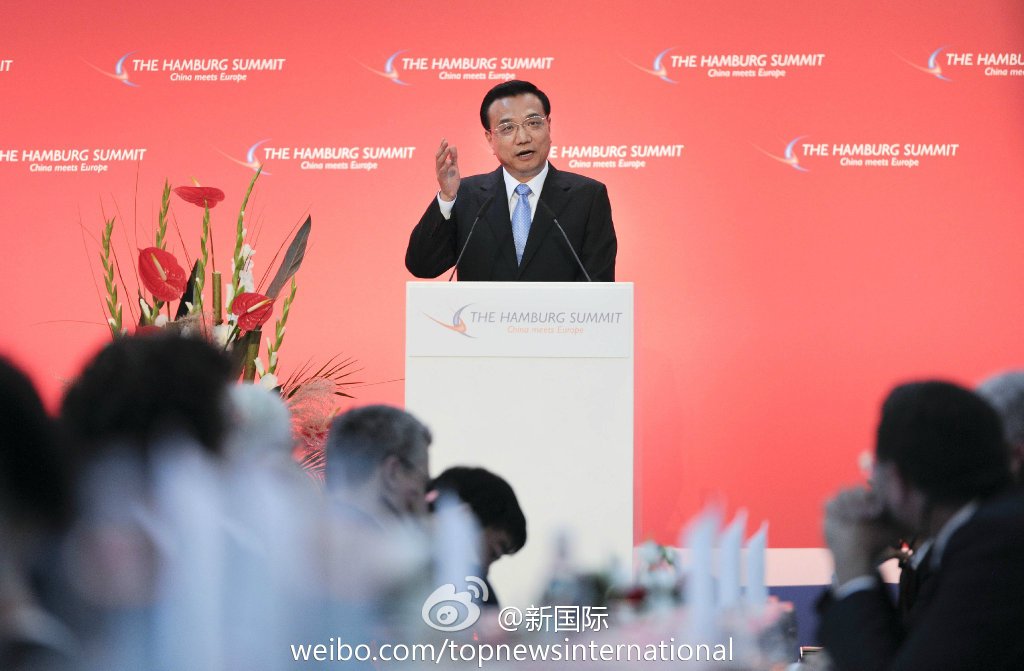 ????新華網北京10月12日電 據新華社“新國際”微博報道,國務院總理李克強11日在中歐論壇漢堡峰會上發(fā)表演講說,中國是最大的新興市場國家,歐盟是最大的發(fā)達經濟體,“最大”與“最大”交融、一切都有可能,“新興”與“發(fā)達”攜手、優(yōu)勢就會倍增,中歐在新興和發(fā)達經濟體合作中可以成為典范。