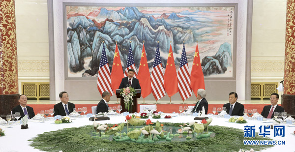 習近平舉行宴會歡迎美國總統(tǒng)奧巴馬