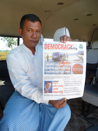 緬甸一份名為Democracy Today的報紙刊登了李克強(qiáng)總理的署名文章。(新華社記者 桂濤攝)