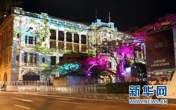 ????這是11月15日在澳大利亞布里斯班拍攝的夜景。當(dāng)日,二十國(guó)集團(tuán)領(lǐng)導(dǎo)人第九次峰會(huì)在澳大利亞布里斯班舉行。入夜,布里斯班街頭部分建筑披上了彩色的“外衣”。 新華社記者 趙丹惠 攝