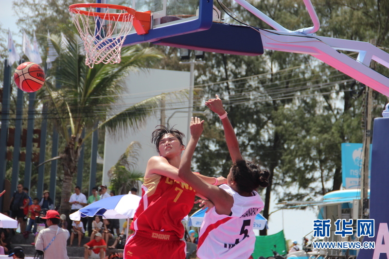 ??? 11月16日,中國沙灘籃球運動員黃銀婷(左)在比賽中。中國體育代表團16日在泰國普吉舉行的第四屆亞洲沙灘運動會上勇奪2枚金牌和2枚銅牌。當天比賽全部結束時,中國隊以3金2銀5銅的成績暫列獎牌榜第五。新華社發(fā)(塔納攝)