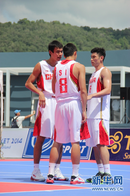 ??? 11月16日,中國沙灘籃球運動員劉桂均(左)、司坤(中)、劉洺宇(右)在比賽中場。中國體育代表團(tuán)16日在泰國普吉舉行的第四屆亞洲沙灘運動會上勇奪2枚金牌和2枚銅牌。當(dāng)天比賽全部結(jié)束時,中國隊以3金2銀5銅的成績暫列獎牌榜第五。新華社發(fā)(塔納攝)