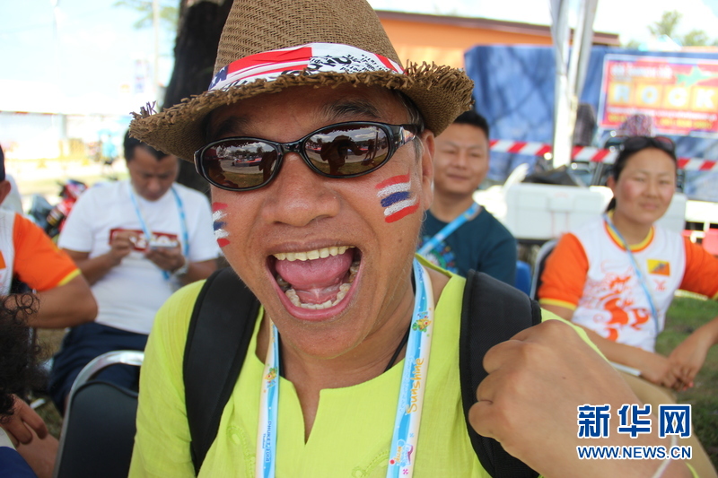 ??? 11月16日,泰國民眾為泰國運動健兒加油。中國體育代表團16日在泰國普吉舉行的第四屆亞洲沙灘運動會上勇奪2枚金牌和2枚銅牌。當天比賽全部結束時,中國隊以3金2銀5銅的成績暫列獎牌榜第五,東道主泰國隊以9金11銀12銅的成績暫列金牌榜和獎牌榜第一。新華社發(fā)(塔納攝)