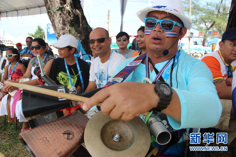??? 11月16日,泰國民眾為泰國運(yùn)動(dòng)健兒加油。中國體育代表團(tuán)16日在泰國普吉舉行的第四屆亞洲沙灘運(yùn)動(dòng)會(huì)上勇奪2枚金牌和2枚銅牌。當(dāng)天比賽全部結(jié)束時(shí),中國隊(duì)以3金2銀5銅的成績暫列獎(jiǎng)牌榜第五,東道主泰國隊(duì)以9金11銀12銅的成績暫列金牌榜和獎(jiǎng)牌榜第一。新華社發(fā)(塔納攝)