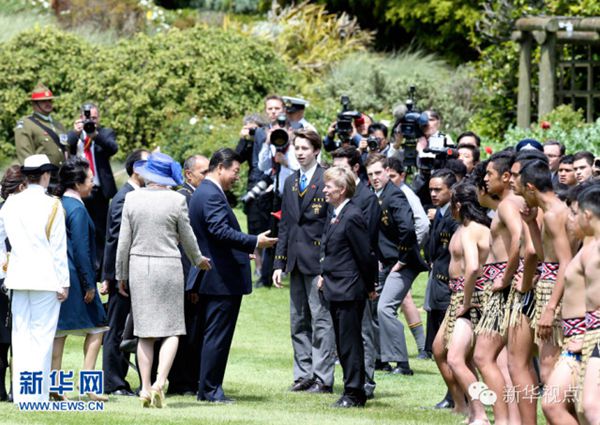 ????新西蘭的歡迎儀式頗具特色。習(xí)近平主席和夫人彭麗媛抵達(dá)時,毛利族人排著整齊列隊(duì),表演挑戰(zhàn)儀式,以毛利族最古老的迎賓禮歡迎最尊貴的客人。