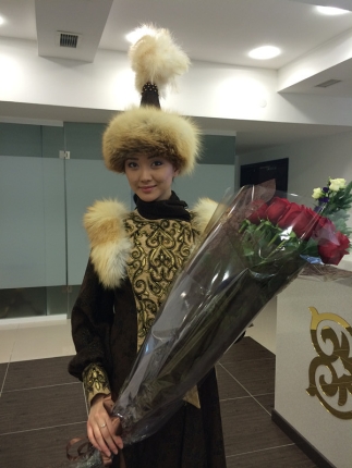 身著民族服裝的哈薩克族姑娘,給克強(qiáng)總理獻(xiàn)上了一束玫瑰花。禮賓官向記者透露,按照當(dāng)?shù)亓?xí)俗,迎接客人時一般都送顏色鮮艷的花,而且是送單數(shù)。哈薩克語中玫瑰代表著“熱情和祝?!?,今天獻(xiàn)給克強(qiáng)總理的就是15支玫瑰花。