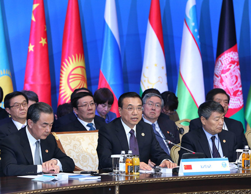?。保等瞻⑺顾{獨(dú)立宮,克強(qiáng)總理在上合組織成員國政府首腦理事會(huì)第十三次會(huì)議大范圍會(huì)談上提出三點(diǎn)建議:筑牢地區(qū)安全穩(wěn)定屏障,打造區(qū)域合作新亮點(diǎn),更加注重民生和人文交流合作。