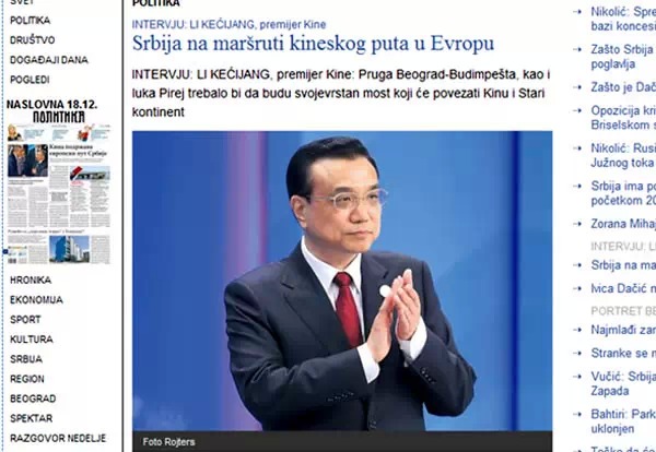 ????在第三屆中國-中東歐國家領(lǐng)導(dǎo)人會晤前夕,中東歐國家主流媒體對中國國務(wù)院總理李克強(qiáng)進(jìn)行了聯(lián)合書面采訪,包括馬其頓《日報(bào)》、保加利亞《標(biāo)準(zhǔn)報(bào)》、克羅地亞《晨報(bào)》、斯洛文尼亞《日報(bào)》、匈牙利《匈牙利民族報(bào)》、斯洛伐克《真理報(bào)》、波蘭《共和國報(bào)》等在內(nèi)的紙媒均整版刊發(fā)了對李克強(qiáng)的聯(lián)合采訪稿。