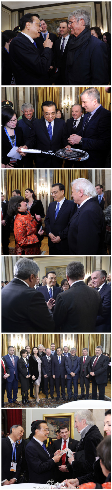 ??? 當?shù)貢r間18日下午,李克強總理在塞爾維亞接受“貝爾格萊德榮譽市民”證書后,同在場的塞各界知名人士交流。他們既有為人熟知的電影演員、足球教練,也有歌劇表演藝術(shù)家和長期研究中國的漢學家。總理同他們親切交談,現(xiàn)場氣氛友好熱烈。