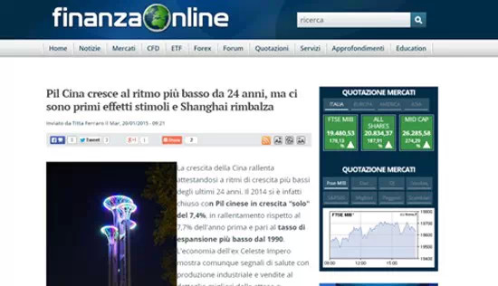 意大利財經在線網站1月20日發(fā)表文章稱雖然2014年中國的國內生產總值是24年來最低,但工業(yè)生產、零售業(yè)和股市都釋放出健康和積極的信號。