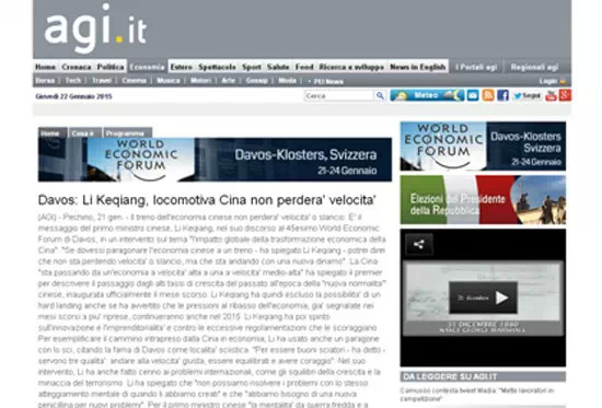 文章援引中國社會科學院經濟研究所專家韓孟對李克強達沃斯之行的解讀稱,自2013年擔任中國總理以來,李克強被認為是中國經濟轉型的“引領者”。無疑,達沃斯世界經濟論壇是一個很好的平臺,這里不但集中了世界經濟的精英人物,還給中國提供了一個機會向他們展示自己。盡管中國的經濟增長速度略有放緩,但是這樣的經濟狀態(tài)更為合理。
