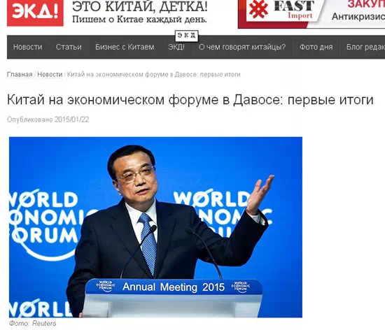 以介紹中國社會和經(jīng)濟發(fā)展為主的網(wǎng)站chinababe.ru22日發(fā)表文章,盤點了中國在此次達沃斯論壇上取得的初步成果。文章稱,中國代表團由李克強總理率領(lǐng)。目前,中國是世界第二大經(jīng)濟體,國際社會非常關(guān)注中國的經(jīng)濟發(fā)展規(guī)模和速度。在論壇期間,李克強總理有關(guān)中國經(jīng)濟轉(zhuǎn)型,特別是對中國經(jīng)濟增長速度的闡釋打消了國際社會的顧慮。