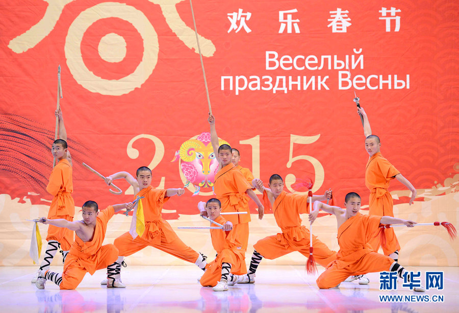 ????新華網(wǎng)塔什干2月6日電(記者 沙達(dá)提)2月4日晚,在烏茲別克斯坦首都塔什干突厥宮,藝術(shù)家在表演中國(guó)武術(shù)。由中國(guó)文化部、中國(guó)駐烏茲別克斯坦大使館、烏外交部、烏文化體育部和塔什干市政府共同聯(lián)辦、河南省文化廳攜鄭州歌舞劇院、登封市少林塔溝武術(shù)學(xué)校承辦的2015“歡樂(lè)春節(jié)”中亞行演出4日至5日在塔什干突厥宮分別為烏茲別克斯坦政府官員、各界友好人士、駐烏使節(jié)和旅烏各族華僑華人、維吾爾文化中心、東干文化中心及中資企業(yè)、教師和留學(xué)生代表近1600余人獻(xiàn)上充滿(mǎn)濃郁中國(guó)特色的文化藝術(shù)盛宴。