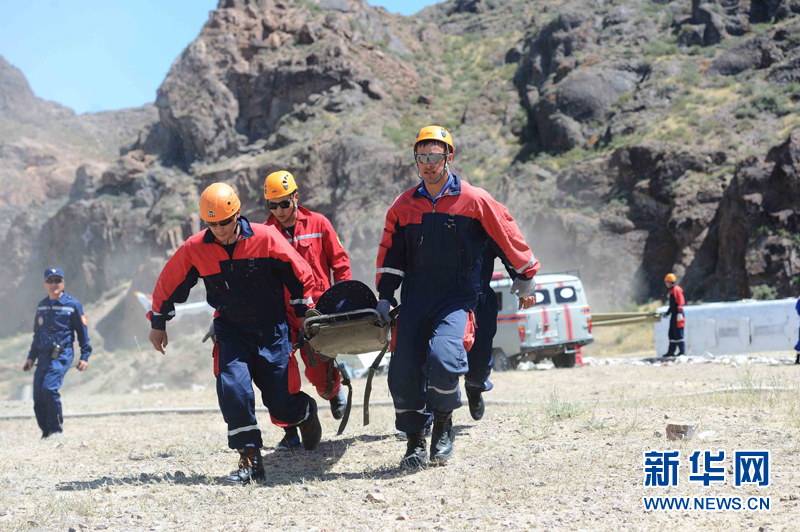 6月3日,代表中國參加上合組織國際救援聯(lián)合演練的新疆消防總隊(duì)隊(duì)員在哈薩克斯坦阿拉木圖州塔姆卡壘塔斯景區(qū)的哈內(nèi)務(wù)部緊急情況委員會(huì)教練基地“巖石城-阿斯塔納”參加演練。新華社記者沙達(dá)提攝