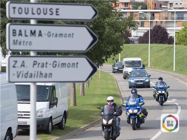 圖為8月1日,在法國圖盧茲近郊,載有疑似馬航MH370航班殘骸的白色貨車駛?cè)牒娇占夹g(shù)分析機構(gòu)。新華社發(fā)