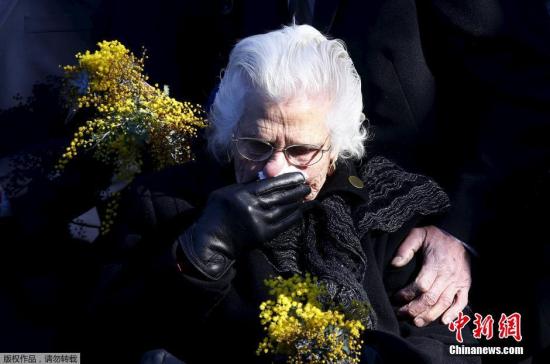 圖為一名遇難者的家屬在揭幕儀式現(xiàn)場,為逝去的親人獻(xiàn)花。